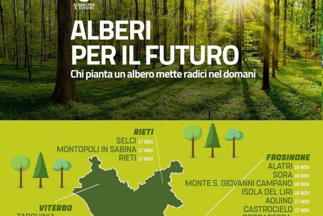 L’iniziativa, per il comune di Rieti quest’anno avrà luogo il 17 novembre in occasione della Giornata Nazionale degli Alberi. Su indicazione dell’assessore Valentini “abbiamo deciso di piantare tre alberi in Piazza Craxi nel quartiere di Campoloniano, alle ore 10.30. Si tratta di un evento trasversale che si svolgerà senza bandiere o simboli politici. Nella nostra provincia l’iniziativa Alberi per il Futuro ci sarà anche nel comune di Montopoli di Sabina nell’area camper alle ore 16.00 del 19 novembre, e nel comune di Selci presso la scuola elementare Enrico Medi alle ore 10.00 di domenica 17 novembre. Chi pianta un albero mette radici nel domani” affermano Il consigliere comunale di Rieti, Roberto Casanica, il consigliere comunale di Montopoli di Sabina Eleonora Maria Fabi