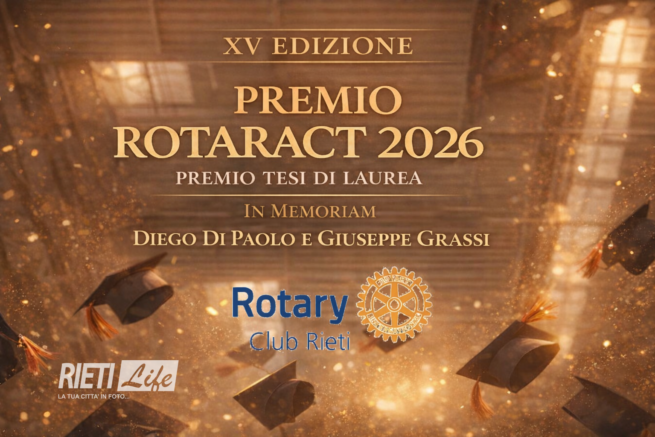 Con riferimento al comunicato stampa relativo alla XV edizione del Premio Tesi di Laurea “Premio Rotaract”, diffuso nelle scorse settimane, il Rotary Club Rieti comunica una decisione assunta successivamente dal Consiglio Direttivo. Il Premio, per l’edizione in corso, viene ufficialmente intitolato alla memoria di Diego Di Paolo, già socio del Club, e di Giuseppe Grassi, socio attivo e punto di riferimento della vita rotariana reatina, recentemente scomparsi. La decisione è maturata in questi giorni quale espressione condivisa del sentimento di gratitudine e riconoscenza del Club nei confronti di due figure che hanno incarnato con dedizione i valori rotariani del servizio, dell’impegno civile e dell’attenzione verso le giovani generazioni.