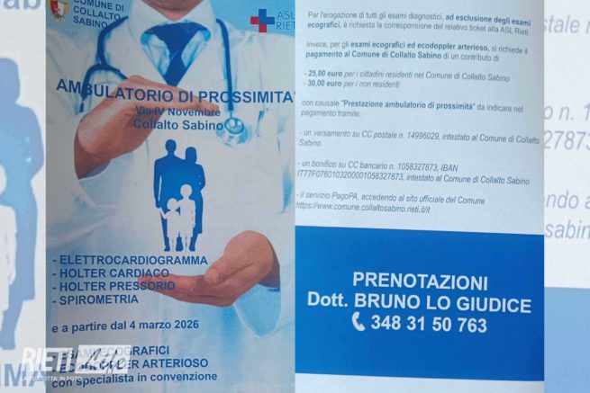 Un nuovo servizio sanitario di prossimità prende forma a Collalto Sabino. L’amministrazione comunale, guidata dal sindaco Maria Pia Mercuri, ha attivato un ambulatorio destinato a rafforzare l’assistenza sul territorio, soprattutto per le fasce più fragili della popolazione.