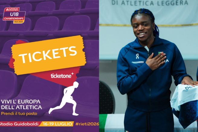 Mancano esattamente 100 giorni all’inizio dei Campionati Europei Under 18 di atletica leggera, in programma a Rieti, stadio Guidobaldi, dal 16 al 19 luglio, e l’attesa è già alle stelle. Giovani talenti da tutta Europa si sfideranno promettendo adrenalina, record e grandi emozioni. “Non vedo l’ora di correre davanti al pubblico italiano, vi aspetto allo stadio Guidobaldi per farci il tifo, non perdetevi questi quattro giorni di grande atletica”, ha detto l’azzurra Kelly Doualla, primatista europea U18 dei 100 metri, ‘testimonial’ d’eccezione per il lancio della campagna ticketing.
