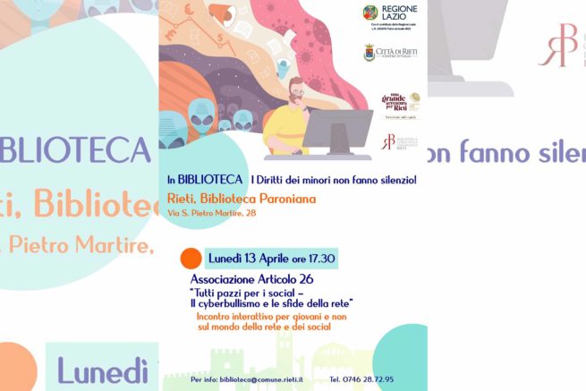 “In Biblioteca i diritti dei minori non fanno silenzio”: questo il titolo della rassegna articolata in 4 distinti eventi rivolti a tutta la cittadinanza, che si svolgeranno a partire da aprile 2026 presso la Biblioteca Comunale Paroniana, nell’ambito delle attività di “L’Aquila2026, una grande avventura per Rieti”.