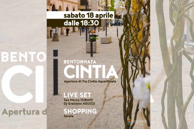 In occasione della riapertura di Via Cintia – programmata per le ore 7 di domenica 19 aprile – il Comune di Rieti ha organizzato una serata di musica e shopping serale. L’appuntamento è con il live set di Marco Turani e Graziano Aguzzi a Porta Cintia dalle ore 18.30 di sabato.