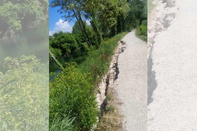 La ciclabile di ponte Cavallotti frane nel fiume per un ampio tratto