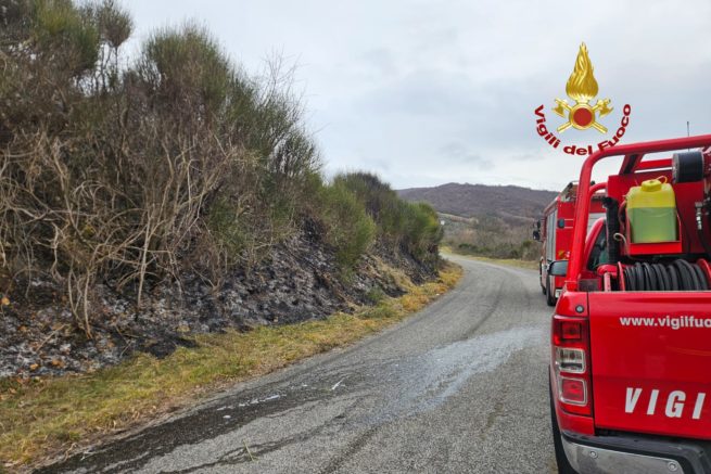 Longone Sabino, incendio lungo la SP30: intervento dei Vigili del Fuoco